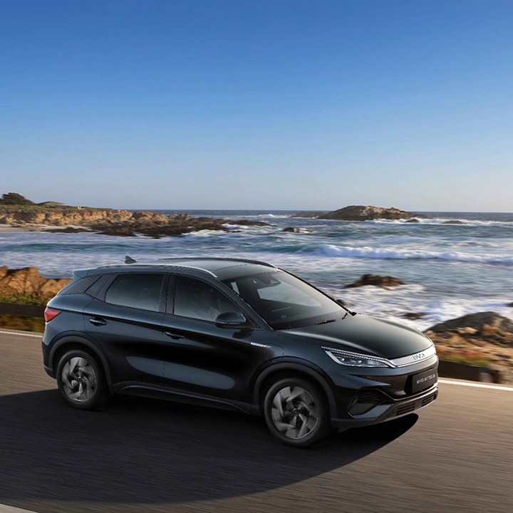 ·डिजाइन और स्टाइलिंग: Atto 3 में एक modern, muscular और aerodynamic design है। इसमें ड्रैगन फेस 3.0 डिजाइन language, swept-back LED हेडलैंप, और a bold light bar that runs across the rear शामिल है। overall profile sporty और dynamic है।