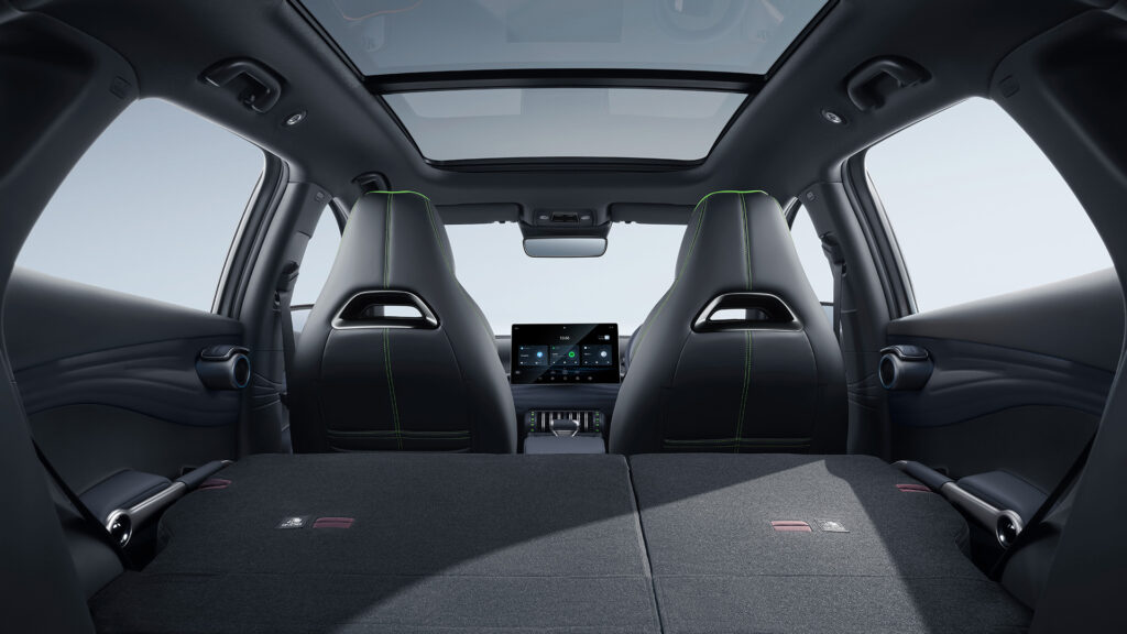 इंटीरियर और तकनीक: interior Atto 3 का सबसे unique selling proposition है। इसे “GYM” (Get Young Moving) theme के साथ डिजाइन किया गया है। डैशबोर्ड और दरवाजों पर guitar-string-like elements हैं, और gear selector area एक barbell जैसा दिखता है। सबसे eye-catching feature 12.8-inch की एक adaptive rotating touchscreen infotainment system है जो portrait और landscape mode के बीच switch हो सकती है। यह Android Auto और Apple CarPlay को सपोर्ट करता है।