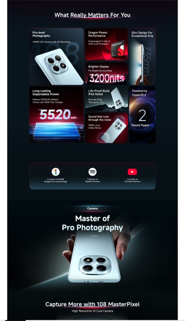 Launching with Android 14 and Xiaomi’s new HyperOS is a major advantage. Users can expect a cleaner, more cohesive interface with better device interconnectivity, improved performance, and longer software support—a key selling point for longevity.